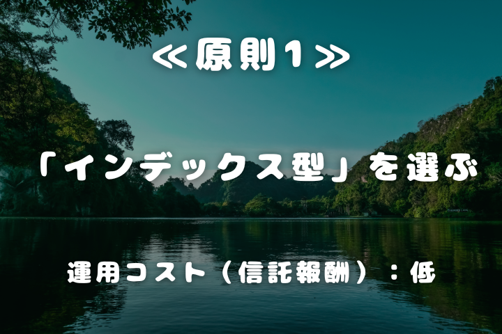 - 原則$\text{1}$:運用コスト(信託報酬)が低い「インデックス型」を選ぶ