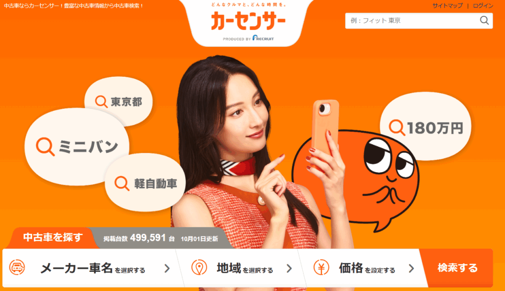 - 1位:カーセンサー|圧倒的な提携業者数と安心のリクルート運営